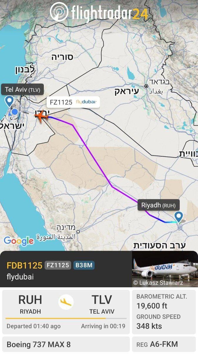Через некоторое время рейс продолжил полет в пункт назначения. А любители flightradar смогли наблюдать картину прямого рейса из Саудовской Аравии в Израиль.