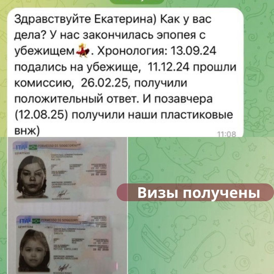 🎯 Гордость за наших клиентов! Делюсь отличной новостью с вами! 📣 Помните наш прямой эфир с Кариной? ✨ Тогда мы рассказывали о её первом шаге — получении шенгенской визы. А сегодня у меня для вас особые новости: семья Карины стала резидентами! 🎉 Это прекрасный пример того, как правильно спланированные действия и профессиональная поддержка помогают достичь больших целей! 🎯 Ваш путь к мечте может начаться прямо сейчас! С уважением, Анна (специалист компании) 💬Whatsapp|Telegram: +7 (951) 790-61-94