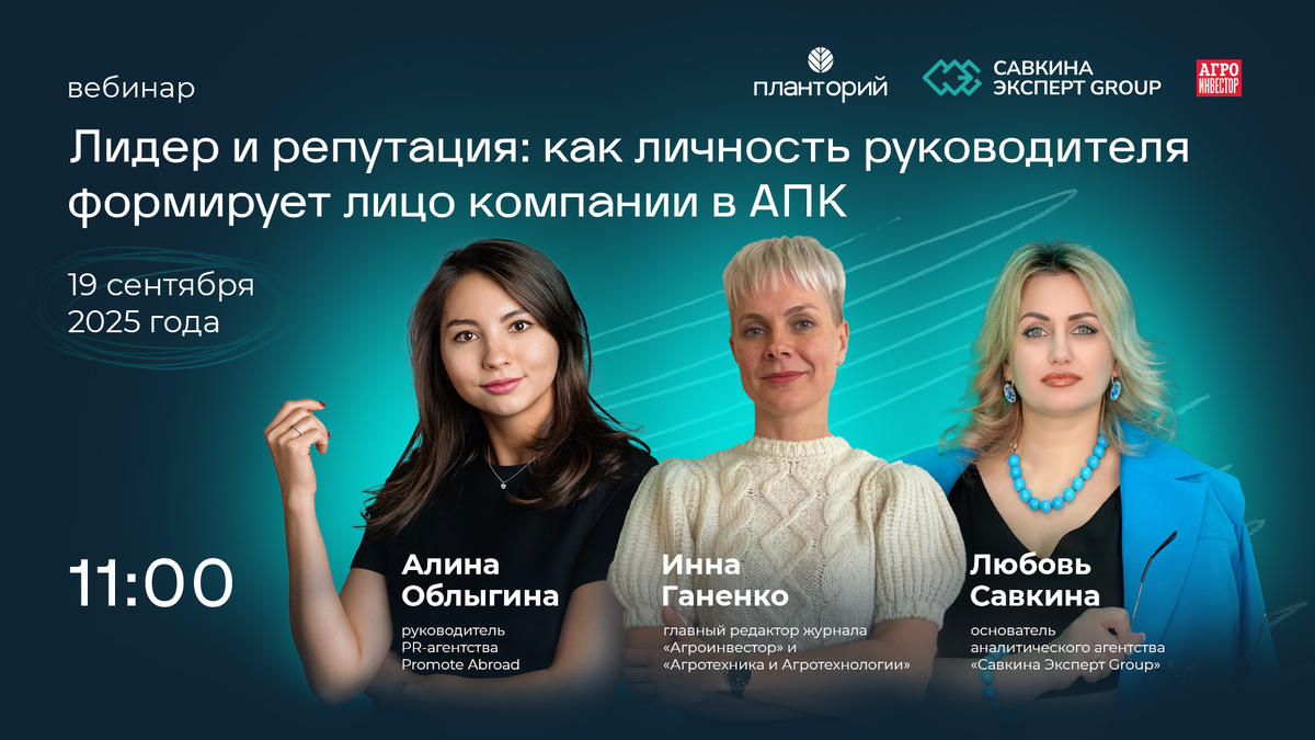 19 сентября 2025 года состоялся вебинар «Лидер и репутация: как личность руководителя формирует лицо компании в АПК». Мероприятие собрало около 100 участников и стало площадкой для обмена опытом между экспертами отрасли.