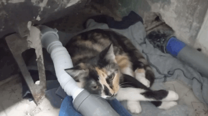 Пока в теме только кошка, ибо мячик она отжала и пошла играть с ним в футбол.
