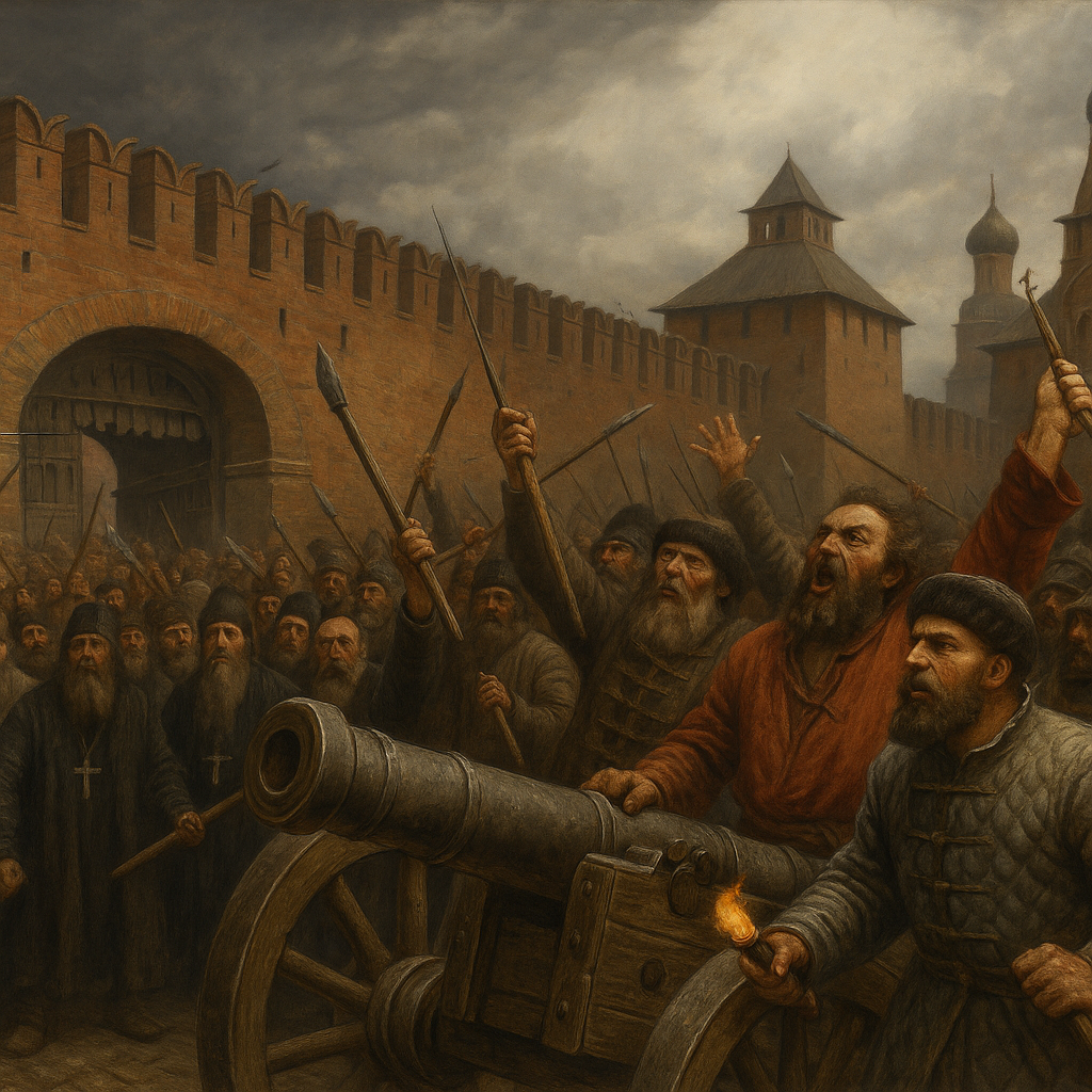 Казалось, новая опричнина уже стучится в двери. Но Бельский не учел настроений москвичей. Когда по городу разнесся слух, что Вельский «побил Мстиславского и других бояр», посадское население восстало. Тысячи разъяренных горожан ринулись к стенам Кремля. Как писал современник, «чернь московская» со всяким оружием пыталась выбить Фроловские ворота. Ситуация накалилась до предела, когда восставшие развернули большую пушку, стоявшую на Лобном месте, и нацелили её на крепостные стены. Народный гнев оказался той силой, что сломала кремлевский тупик. Напуганные до смерти бояре обеих фракций поняли, что силой бунт не подавить. Чтобы успокоить толпу, им пришлось объявить об отставке и ссылке ненавистного Вельского. Этот эпизод критически важен: он показывает, что исход борьбы за власть в тот момент решил не дворцовый заговор, а прямое выступление народа, ставшего на время главной политической силой.