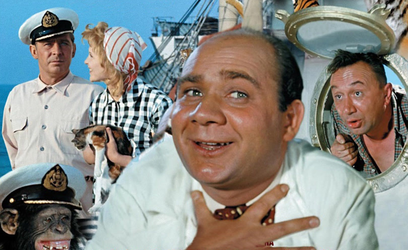 Советское кино всегда было строгим в вопросах морали и цензуры. Любые намёки на интимность или тем более обнажёнку тщательно вырезались или даже не допускались до съёмок. Однако в начале 1960-х зрители впервые увидели на экране нечто, что можно назвать настоящей «обнажённой сенсацией». Это произошло в комедии Владимира Фетина «Полосатый рейс» (1961), где актёр Евгений Леонов показал зрителям свою намыленную попу. «Полосатый рейс» — это лёгкая приключенческая комедия, в которой действие разворачивается на теплоходе. Главные герои — команда судна и дрессированные тигры, которых нужно доставить в порт. На фоне абсурдных и смешных ситуаций, связанных с хищниками и незадачливыми людьми, разворачивается череда комедийных сцен. Фильм снимался как развлекательная картина, рассчитанная на широкого зрителя. В нём нет политических намёков или социальной сатиры — только лёгкий юмор, приключения и море положительных эмоций. Именно Евгений Леонов стал главным «героем» первого эпизода обнажёнки в сов