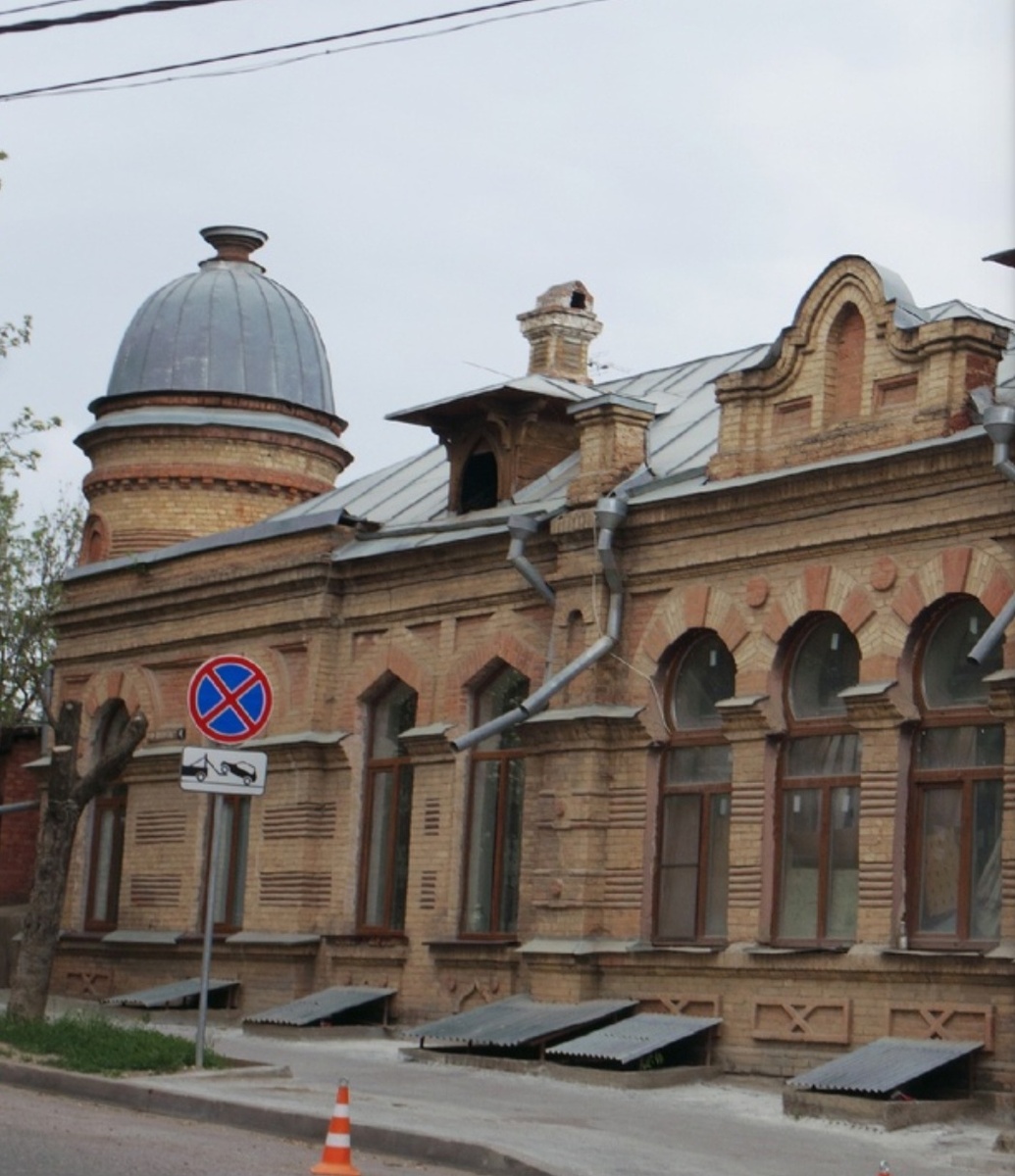 Двухэтажная постройка на каменном цоколе возведена в 1895 году. Она имела 18 комнат. Архитектором особняка стал Ходжаев.