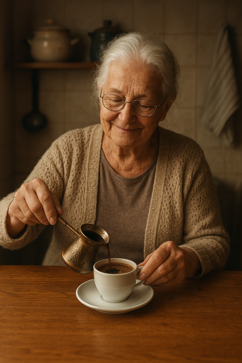 Каждое утро бабушка заходит в маленькую кухню, включает старенький турецкий кофейник и тихо напевает себе под нос. Ей уже восемьдесят, но привычки остались с тех времён, когда она спешила на работу и варила кофе для дедушки. Теперь она варит только для себя. Но, как и раньше, всегда делает две чашки. Одну ставит на противоположный край стола. Там, где когда-то сидел он. Иногда внучка спрашивает: — Ба, зачем тебе вторая чашка? Бабушка улыбается, чуть подвигая блюдце к краю: — Так вкуснее. С пенкой — для него, без пенки — для меня. И кажется, что на мгновение комната наполняется тихим смехом. Будто кто-то невидимый подхватывает чашку и кивает в ответ.