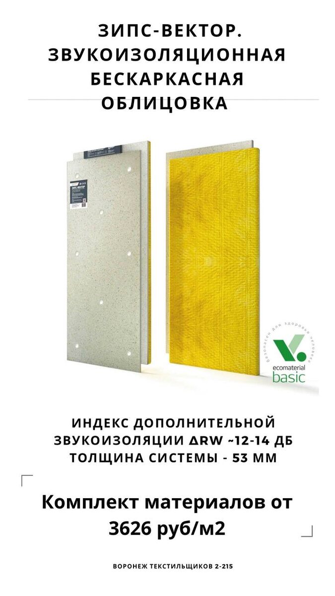 Тонко, но эффективно: звукоизоляция ЗИПС-Вектор для защиты от бытового шума. Всем привет! 👋 Сегодня разберем решение для одной из самых частых проблем в квартирах — защиты от негромкого, но назойливого шума соседей. Знакомо? На помощь приходит наша «тонкая» тяжёлая артиллерия — звукоизолирующая панельная система ЗИПС-Вектор. Всего 53 мм общей толщины — и вы получаете спокойную обстановку. Это идеальный баланс между эффективностью и экономией пространства. 🔊 Ключевые характеристики: · Толщина системы: 53 мм. · Прирост звукоизоляции (ΔRw): 12–14 дБ. · Звукоизоляция стены после монтажа (Rw): ≈ 64 дБ. · Рабочий диапазон: от 125 Гц (отлично справляется с низкими голосами, телевизором). ✅ Когда выбирают ЗИПС-Вектор? · Цель №1: Уменьшить шум от разговоров, телевизора, радио за стеной. · Цель №2: Защититься от собачьего лая, плача ребенка и других бытовых шумов. · Ограничение по пространству: Когда критично сохранить толщину конструкции, но получить ощутимый результат. 🤔 Как это рабо