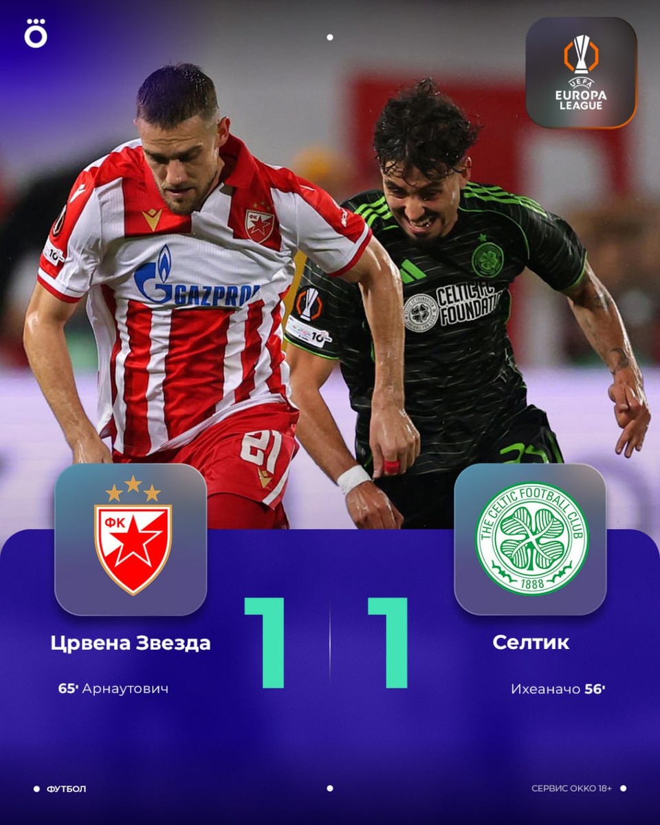 «Звезда» и «Селтик» поделили очки в Белграде. Арнаутович еще в порядке — спас сербов от домашнего поражения 😎 «Мальмё» уже не тот — команда Ридстрёма прямо сейчас является блеклой версией себя. Этим и воспользовался «Лудогорец», увезя 3 очка из Швеции 💪🏻