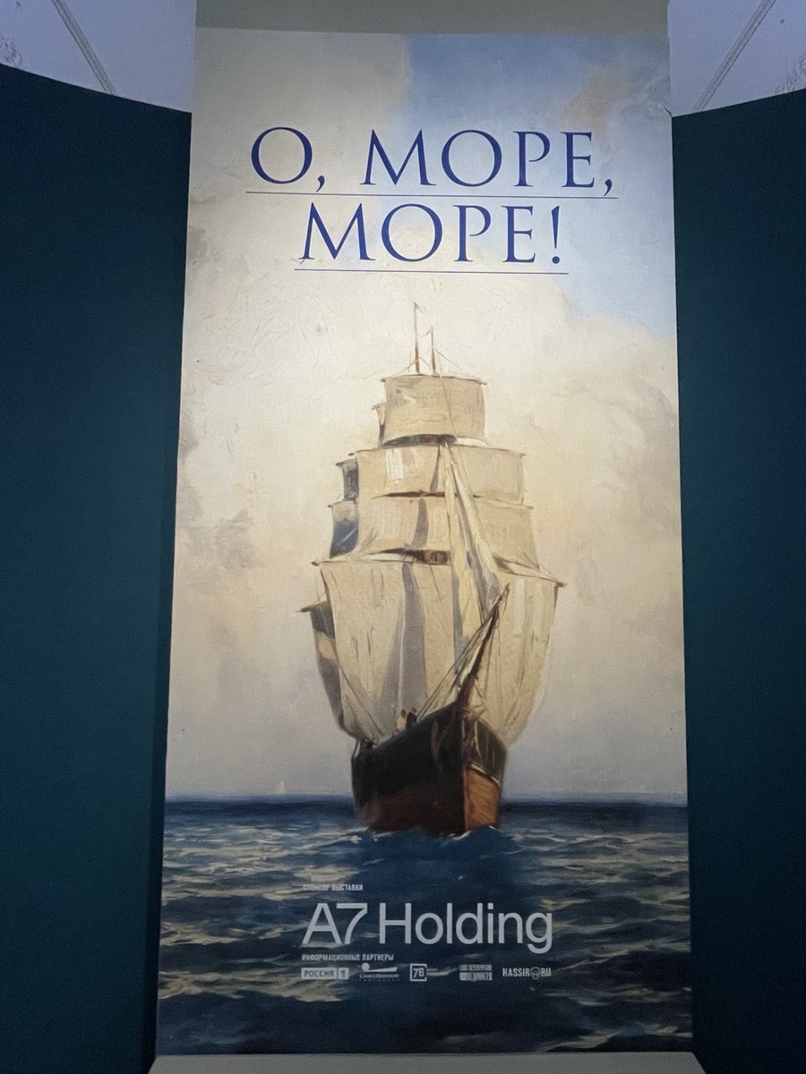 Наверное, я - немного странный человек. Сколько себя помню, самое любимое моё занятие - смотреть на воду. Особенно, если это - море! В какой-то момент мне очень понравилась Цветаева, я до сих пор обожаю ее стихи. А первым толчком для возникновения этой любви послужили два стихотворения, одно из которых "Но душу иную Бог мне дал, Морская она, морская!" очень легло мне на душу. Из всей моей сборной музыкальной солянки, самая любимая песня - "Синяя вечность" Магомаева. Понятно, что когда я узнала что у нас проходит выставка "О, Море, Море!" я не могла туда не пойти. Обычно о выставках я узнаю на работе и иду где-то примерно в последний день перед закрытием:) (ну да, нуда, "серость непроцарапанная"(с)). Но об этой выставке я узнала, спускаясь в метро. И не прошло и двух недель, как я туда сходила. Когда я слышала о маринистике, единственное имя, которое всплывало в моей памяти - Айвазовский. Спору нет, он для меня были и остался лучшим в этом направлении. Начиналась выставка с картин