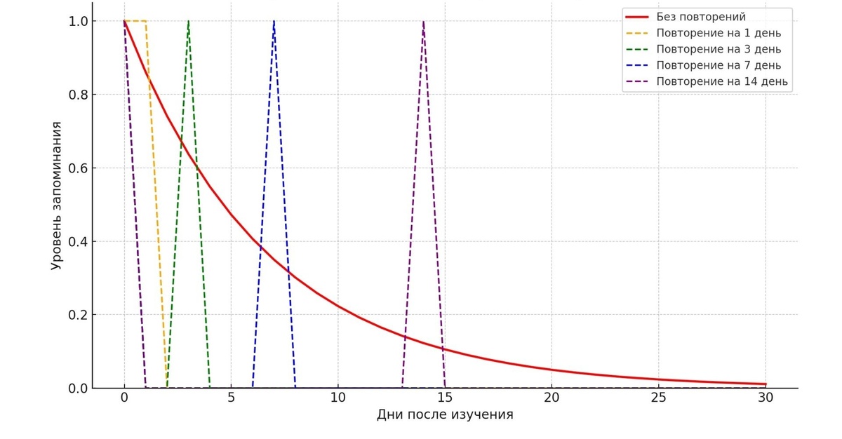 вопросы вызывает именно длина интервалов. А то, что мы всё постепенно забываем, к сожалению, факт. Это мы с вами и без всяких исследований знаем.