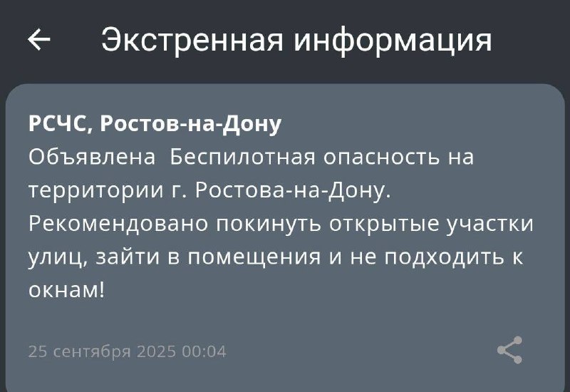 ⚠️ Редкий случай: беспилотную опасность объявили ДЛЯ РОСТОВА