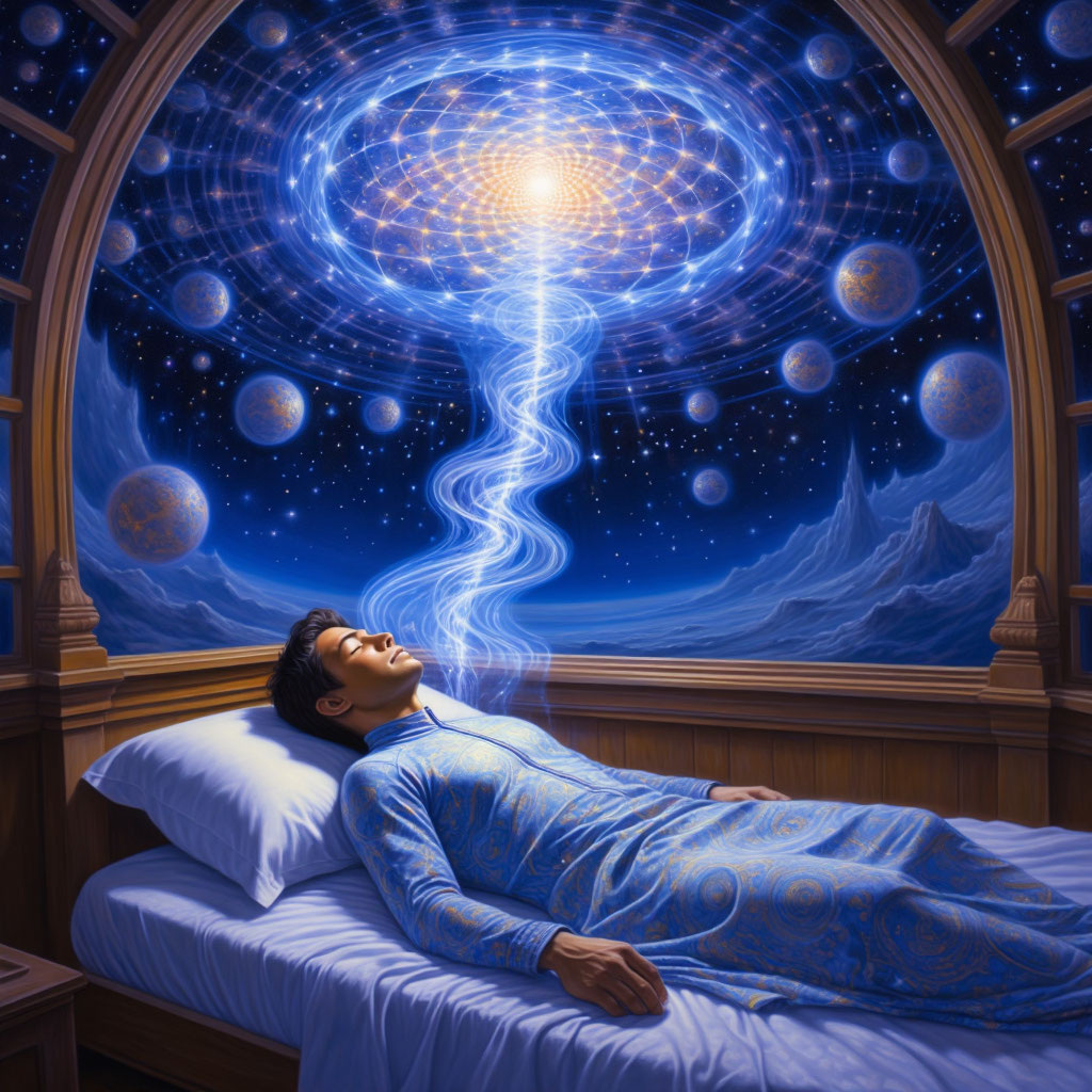 тонкую, гибкую, светящуюся нить, тянущуюся от его «астрального двойника» обратно к физическому телу. Она не мешает двигаться.