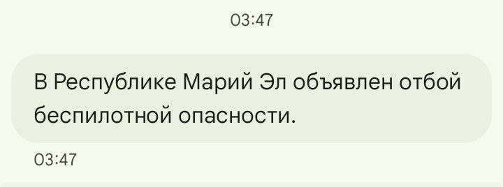В ответ на пост ❗️ Режим беспилотной опасности в Марий Эл отменен. Об этом РСЧС сообщил в 03:47.