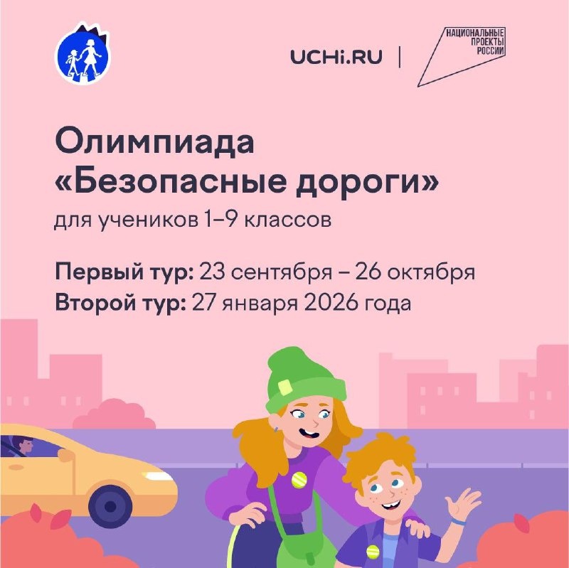 Доброе утро, уважаемые подписчики! ▶️ Начинаем день с важной новости – стартовала Всероссийская онлайн-олимпиада «Безопасные дороги» для учеников 1–9 классов. Эта инициатива, поддержанная национальным проектом «Инфраструктура для жизни», направлена на формирование у школьников навыков безопасного поведения на дорогах. 👨👩👧👦 Активно освещая дорожное строительство и развитие транспортной инфраструктуры, мы понимаем, насколько важно воспитывать культуру безопасности с самого детства. Олимпиада проходит в интерактивном формате на платформе Учи.ру. Задания не требуют углубленных знаний, но развивают критическое мышление и учат ориентироваться в дорожных ситуациях. Это отличная возможность для детей не только проверить свои знания ПДД, но и научиться анализировать потенциально опасные моменты. 🗓️ Первый тур продлится до 26 октября. Участие бесплатное. Приглашаем всех школьников Югры проверить свои знания и внести свой вклад в общую безопасность на дорогах! Присоединяйтесь! ?