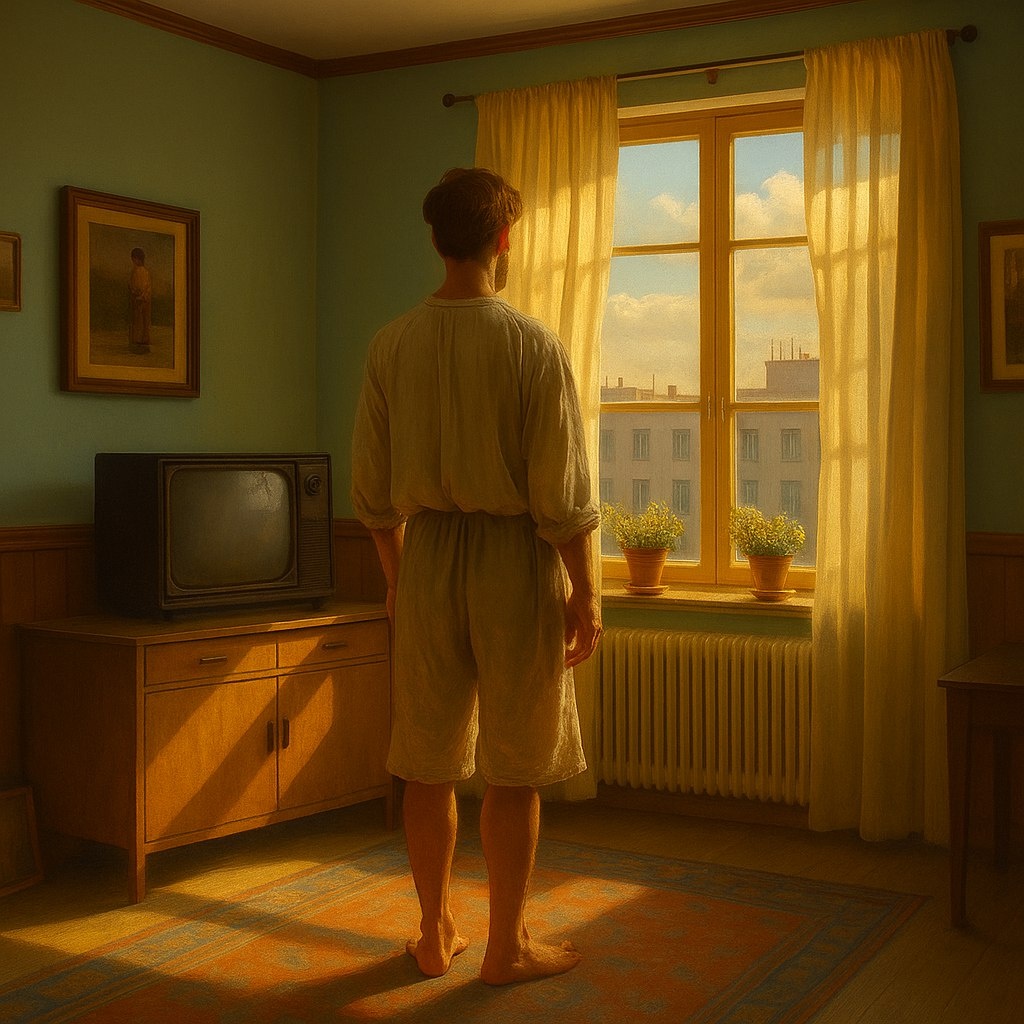 Матвей остался один. Он медленно прошёлся по комнате, трогая стены, присаживаясь на кровать. Всё здесь казалось чужим, непривычным. В деревенском доме каждый предмет хранил тепло рук родных, а здесь всё было стерильно чистым и безличным.