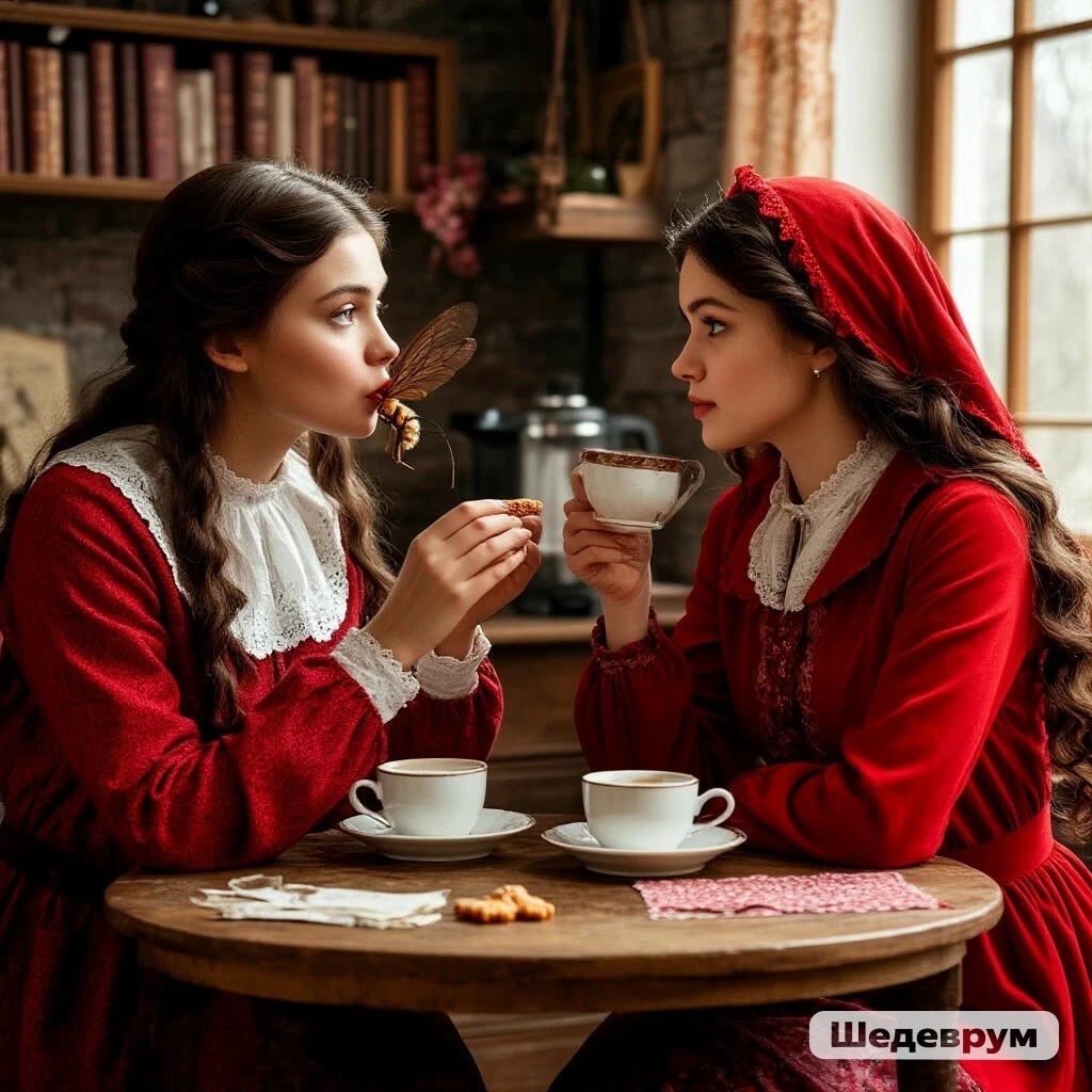 Часть 4 Марфа с Василисой сидели в офисе, пили кофе и чисто по-женски болтали обо всём, включая произошедшую историю. - Чудище не такое страшное, мне его даже жалко стало, - жуя конфету, сказала Марфа. - Ой, я не знаю, чтобы я на месте Красной шапочки делала, оказаться в шкуре такого брр-рр, - Василиса поёжилась и сделала большой глоток кофе. - Перед тем как уйти, оно мне рассказало свою историю, то, что раньше был обычным человеком, но его укусило насекомое и пошло превращение. - Точно! Я всё думала, на кого оно похоже, так на мохнатого паука, фуу, всю жизнь их боюсь, - Василиса с хрустом откусила баранку. - Теперь ему так тяжело, любимая девушка его бросила, он остался одиноким, все его боятся, - Марфа со вздохом опустила чашку на стол. - Ой, что это? Снег? Летом?! За окном летели снежинки, опускаясь на зелёные листья и яркие пионы, контраст был невероятный, но градусник показывал больше двадцати градусов тепла... Вечером как ураган прилетела Яга, с криками и бранью. Еле усп