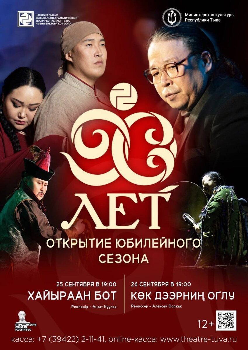 Сегодня Национальный театр Тувы открывает свой юбилейный сезон! 🥳 Девяносто лет — это история, вплетённая в судьбы актёров, зрителей и всей Тувы. В новом сезоне нас ждут любимые спектакли и грандиозные премьеры. Представляем выше афишу спектаклей на ближайшее время в любимом театре! 🎟Билеты на сайте театра theatre-tuva.ru/afisha/ 🟥Актуально в Туве
