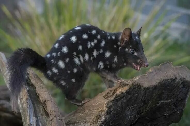 Вчера мы загадали необычного зверька, и правильный ответ оказался кволл, или крапчатая сумчатая куница (Dasyurus viverrinus). Несмотря на довольно скромные размеры, этот сумчатый хищник играет важную роль в природе Австралии и Тасмании. Его окрас делает его похожим на персонажа сказки, а повадки — на настоящего лесного акробата. В этой статье мы подробно рассмотрим его особенности: от маскировки и среды обитания до повадок, питания и необычного цикла размножения. Кволл обладает густой шерстью, окрашенной в тёмные оттенки — от коричневого до почти чёрного. Всё тело покрыто яркими белыми пятнами, а пушистый хвост заканчивается белым кончиком. Такая окраска — не просто украшение: она помогает зверьку сливаться с окружением. Белые пятна напоминают блики лунного света, пробивающиеся сквозь кроны деревьев. Благодаря этому кволлы остаются почти невидимыми. Их сложно заметить и днём, ведь в светлое время они предпочитают прятаться в дуплах деревьев, густых кустах или среди камней. Изначально к
