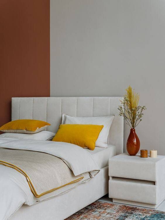 Например, красная диванная подушка на фоне белой стены или желтый ковер на полу в комнате с темными мебельными элементами. Такие яркие детали привлекают внимание, создают настроение, и фокусируют внимание.