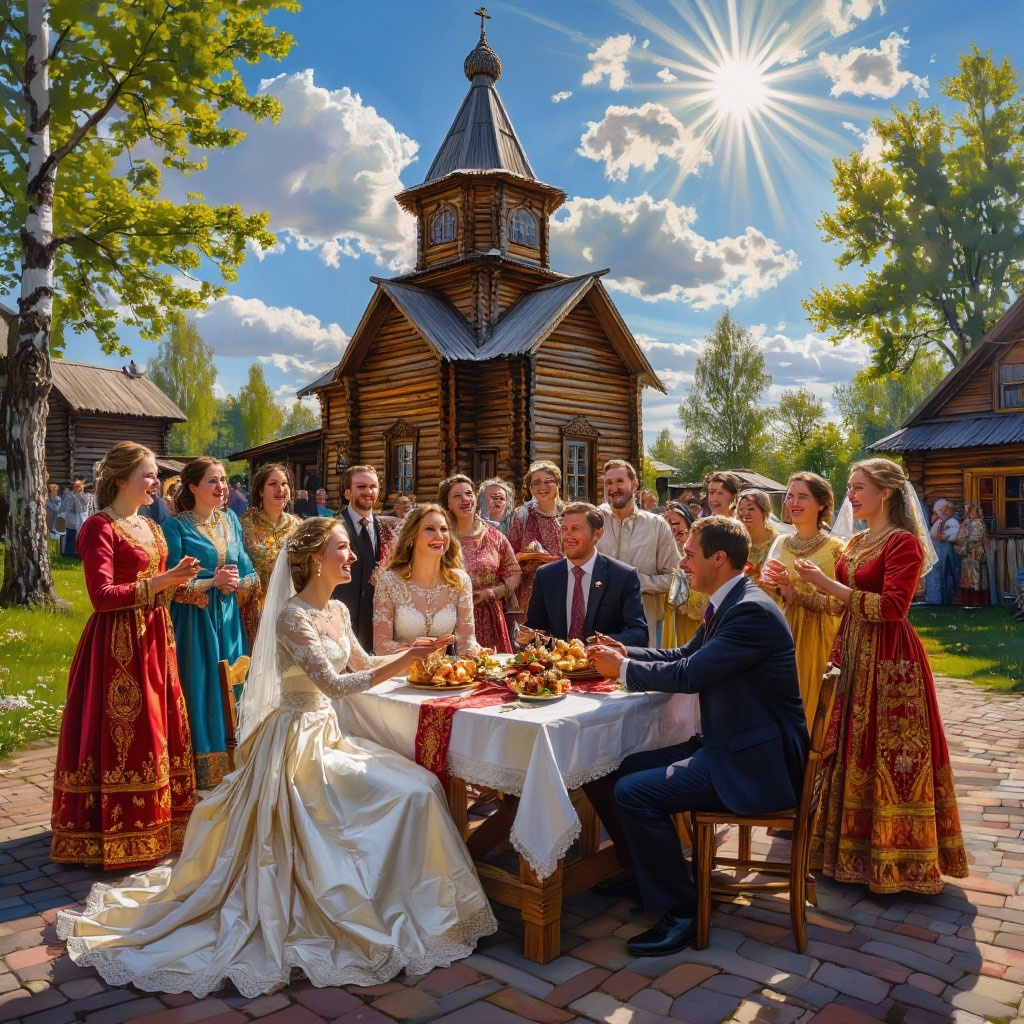 Прошло несколько недель. Деревня готовилась к свадьбе. Соседи помогали украшать улицы цветами, приносили угощения, готовили музыку и танцы. Иван и Марина всё время проводили вместе, смеялись, планировали, и каждое утро начиналось с совместного чаепития.