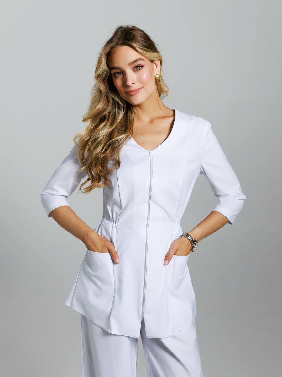 Медицинская форма давно перестала быть просто «рабочим униформом». Сегодня это часть стиля, способ самовыражения и даже источник уверенности. Врачи и медсёстры проводят в ней большую часть жизни — и именно поэтому каждая деталь имеет значение. Белый или чёрный — классика, которая всегда выглядит стильно. Приталенный силуэт подчёркивает фигуру, но не стесняет движений. Карманы расположены так, чтобы всё необходимое было под рукой, а молния превращает переодевание в секунды комфорта. «Я часто слышу от врачей: молния — это мелочь, но именно она делает жизнь проще. Когда каждая минута на счету, важно, чтобы одежда помогала, а не мешала», — говорит дизайнер Mariita. Эта модель создана для тех, кто любит лёгкость. Никаких лишних пуговиц и застёжек — только удобная горловина, два функциональных боковых кармана и регулируемые манжеты. Известный хирург как-то сказал: «В медицине главное — ничего лишнего. В одежде тоже». Блуза с запахом подтверждает эти слова: лаконичность, которая работает на в
