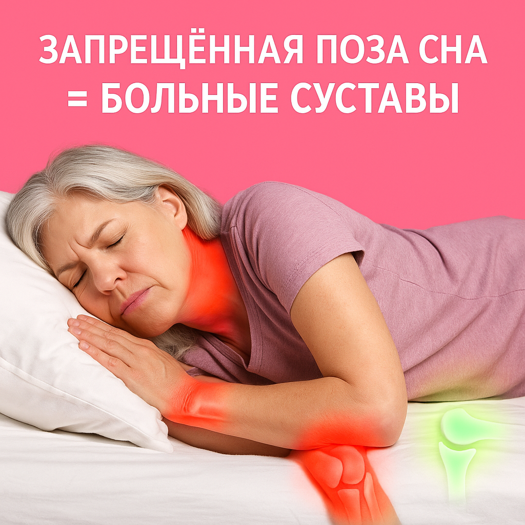 — Люди приходят ко мне с жалобами на колени, шею, поясницу. А причина часто не в тренировках или возрасте. Они просто спят неправильно. Когда мы спим, тело отдыхает, но суставы всё равно работают. Если поза неудобная, нагрузка распределяется неправильно: где-то зажим, где-то скручивание, где-то излишнее давление. В итоге: И самое неприятное — это происходит незаметно. Самая вредная поза для суставов и позвоночника. Что происходит: Врачи говорят: одна ночь на животе = неделя неправильной нагрузки на суставы. Многие женщины любят засыпать на боку, закинув ногу на ногу. Кажется уютно, но: Эта поза особенно опасна после