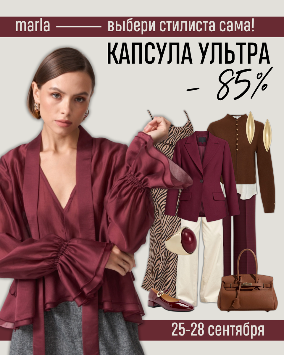 Отдаем лучшее, что мы создали👉🏻 ⠀ Вы выбираете своего стилиста сами, по портфолио. А стилист ваяет вам 💊капсулу аж из 🔟 вещей. С участием вашего гардероба: что пришлете, то и включит. ⠀ А с 25 по 28 сентября мы делаем это со скидкой –85%: капсула УЛЬТРА 1 190₽ вместо 7 800₽ ⠀ 🔟 вещей, 🔟 образов ⠀ Главное – возможность самой выбрать стилиста. Причем только из топовых мастер-стилистов нашего сервиса. С опытом от 5️⃣ лет и 5️⃣0️⃣0️⃣+ наших клиентов. Теперь вы можете выбрать, кто из них соберет вашу капсулу. ⠀ А мы, как всегда, соберем, привезем одежду на 24 часа, поможем в чате примерить и посадить одежду, на следующий день увезем то, что вы решите не оставлять. ⠀ Как выбрать стилиста при заказе капсулы: ⠀ 📋с 25 по 28 сентября заполните анкету по 🔗 В анкете выберите тариф Ультра. ⠀ 💸по акции он стоит 1 190₽ вместо 7 900₽, эту сумму мы вычтем из вашего счета на одежду после примерку, так что сервис будет в подарок! ⠀ 💬после в чате мы вышлем вам ссылку на выбор стилиста: