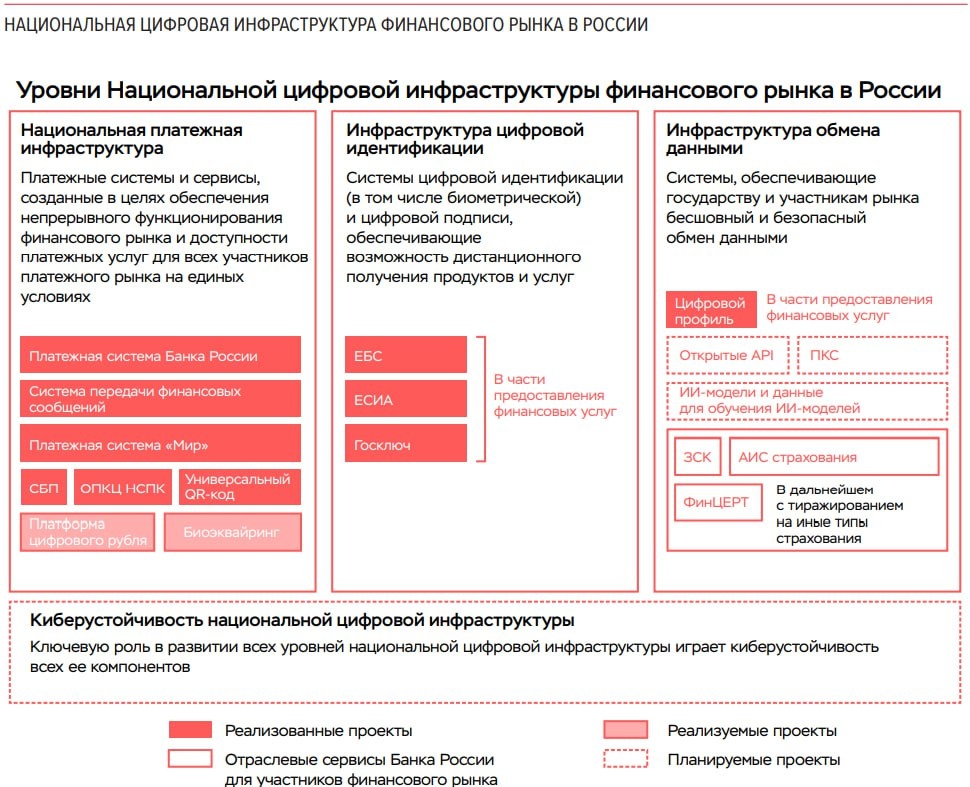 Согласно докладу, ключевые уровни национальной цифровой инфраструктуры финансового рынка: