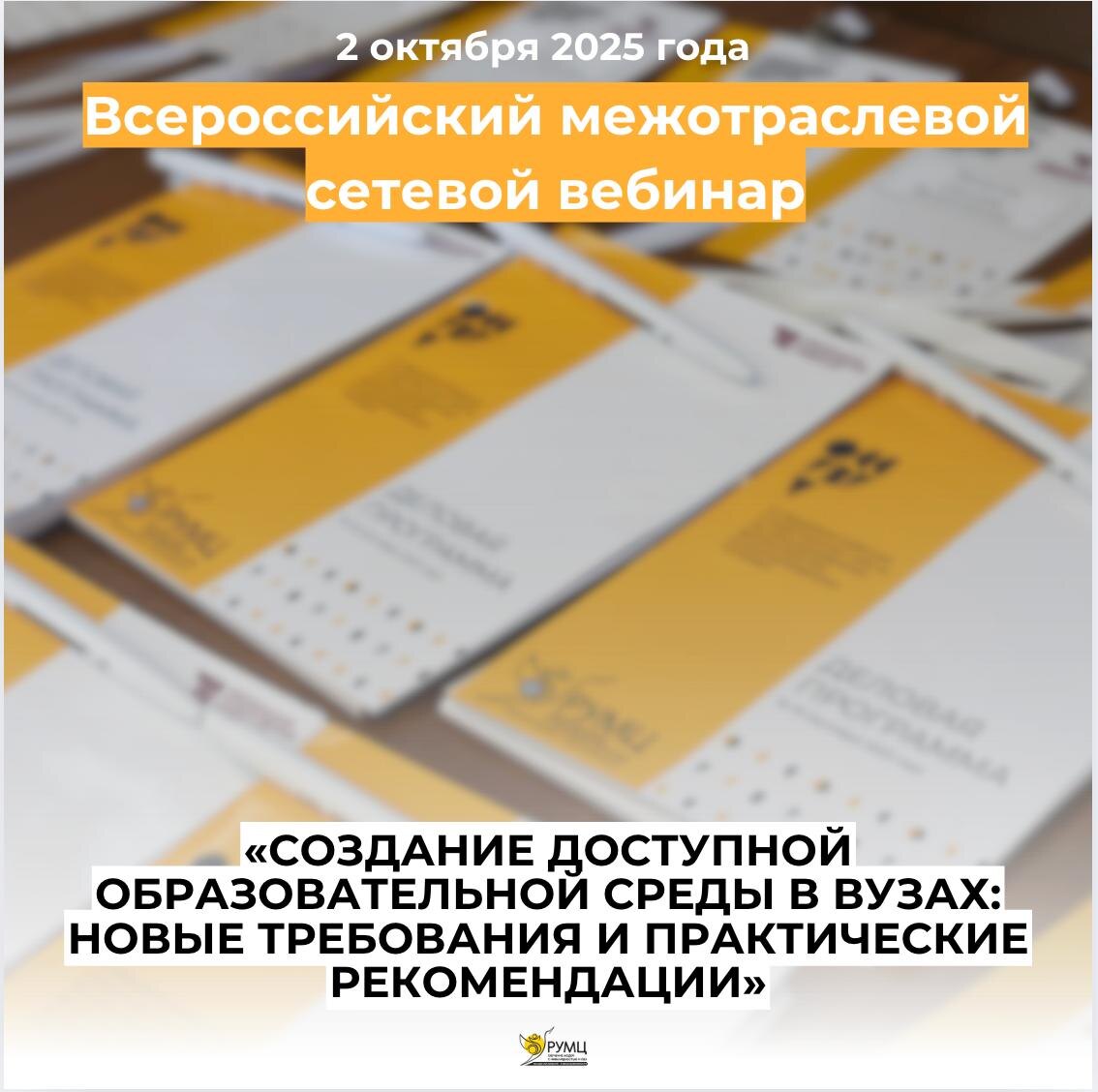 😍 Сеть РУМЦ ВО анонсирует Всероссийский межотраслевой вебинар «Создание доступной образовательной среды в вузах: новые требования и
