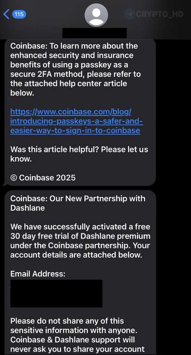 ⚠️ Мошенники маскируются под Coinbase и рекламируют фейковое «партнерство» с менеджером паролей Dashlane (предупреждение)