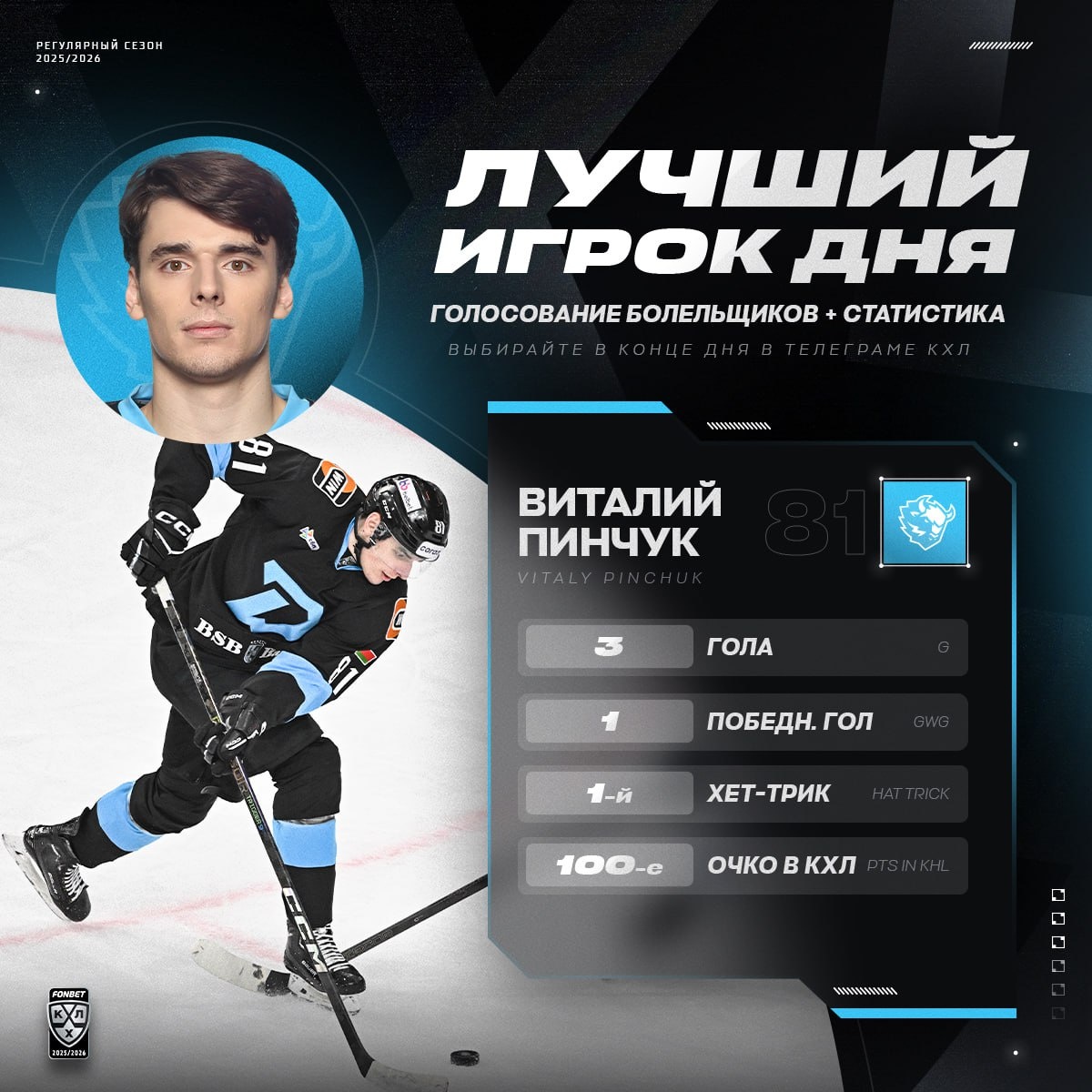 Набрал 100-е очко в карьере, оформил первый хет-трик в КХЛ, забил все голы своей команды — Виталий Пинчук 🦬 надолго запомнит вчерашний