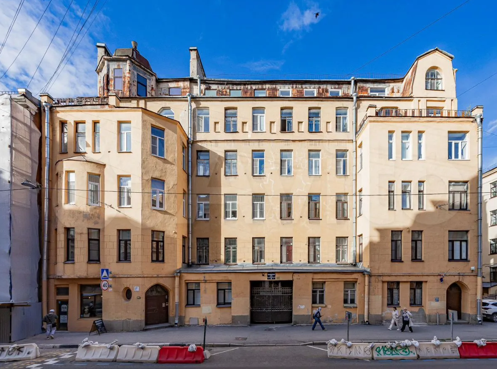 Доходный дом Никитина — интересное здание на Введенской улице, дом 14, построено в 1912 году архитектором Крыжановским, стиль — модерн. Здесь, на четвертом этаже, продают интересную квартиру. Парадная не в лучшей форме, но всё чисто, лифт в наличии. Площадь квартиры — 145,6 метров квадратных, шесть комнат, два входа, потолки 3,2 метра высотой. Планировка сумбурная и нестандартная, окна смотрят на четыре стороны, солнце поймаете в любом случае. Глядя на такой план, возникает желание посмотреть, как оно было изначально, и благодаря премиум-подписчикам могу разгуляться по платным архивам, вуаля, ниже представлен план этажа при постройке. Искомая нами квартира в правом верхнем углу и, на удивление, почти сохранила оригинальную планировку, да, без уплотнения не обошлось, вырезали небольшую комнату и подвигали стены, но кардинальной перестройки удалось избежать. Интересно, но имелись когда-то и анфиладные двери, так что новым собственникам стоит присмотреться к стенам. Сейчас эта квартира —