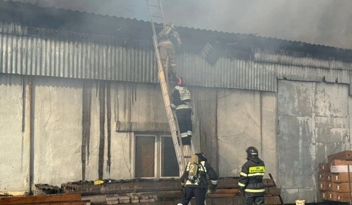 В Астане вспыхнул пожар на складе: огонь охватил кровлю здания (ВИДЕО)