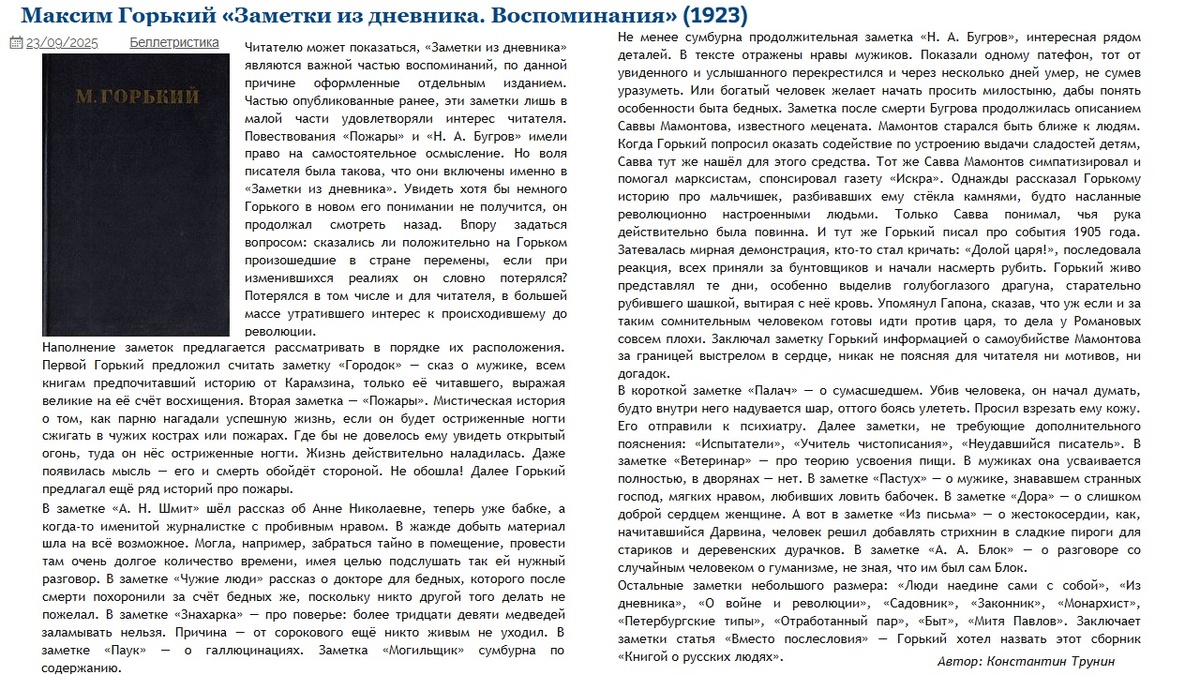 Горький "Заметки из дневника. Воспоминания" (1923) | Критика