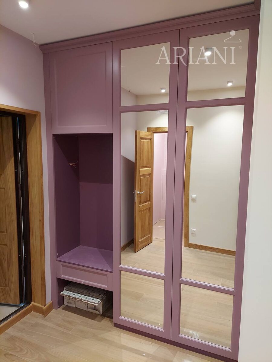 Представляем встроенную гардеробную систему в светло-фиолетовом оттенке — идеальное решение для организации пространства прихожей.