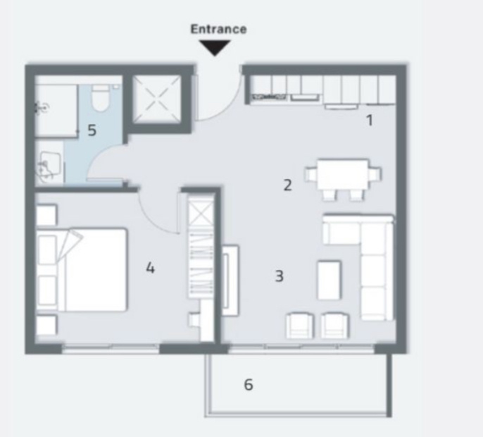 Почему я начала с этого застройщика? Так как он строит сейчас стена к стене к жк, в котором я живу. Это престижный район Нового Каира - Golden Square. Проект рядом со мной называется Aster, я собственно пришла спрашивать про него, но его первая фаза уже распродана, а продажа второй еще не открылась. Они мне предложили другой жк (тоже на стадии строительства), Avelin. На плане однокомнатная квартира в 65 квадратных метров выглядит так: