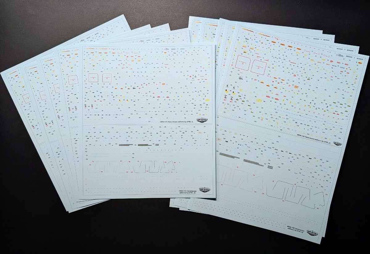 Московская Тemp Мodels выпустила декали с техническими надписями и обозначениями для моделей Су-27 (Т-10П/Т-10С)/Су-27СМ/Су-30М2 и Су-27УБ в масштабах 1/72, 1/48 и 1/32.