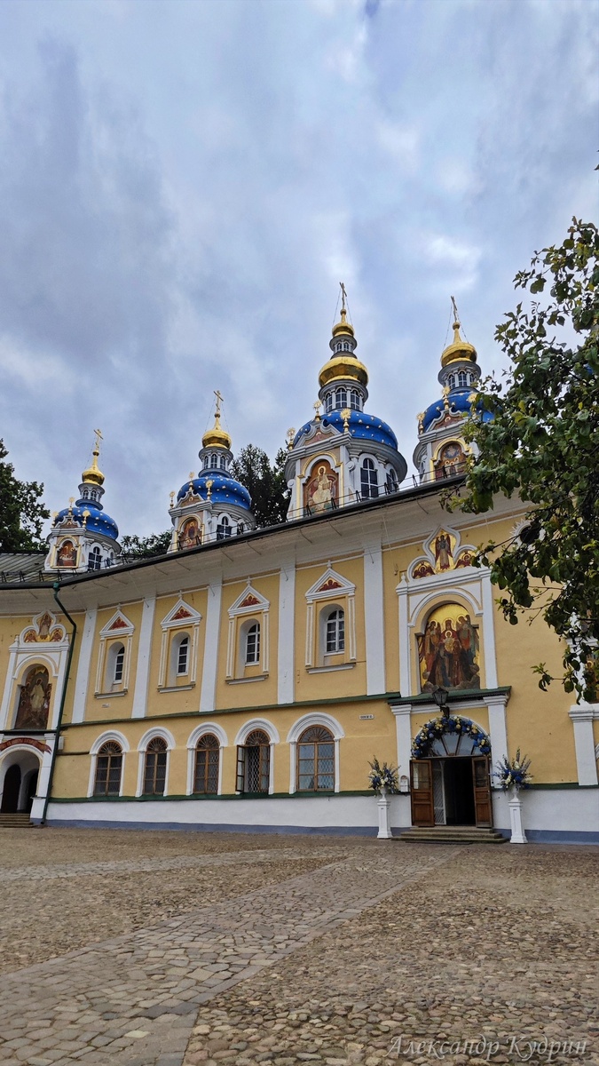 Пройдя через цветущий двор, ты оказываешься перед самым, пожалуй, необычным входом в храм, который только можно представить. Успенская пещерная церковь — это не просто церковь, а главный и самый древний храм обители. Её фасад, буквально вросший в песчаный холм, это лишь начало. Всё остальное помещение уходит вглубь горы, как будто сама земля расступилась, чтобы принять святыню. Представьте: 1473 год. Инок Иона вручную выкапывает в холме из песчаника небольшую пещеру для молитв. Освятить храм псковские священники отказываются, слишком уж необычно. Пришлось обращаться аж к новгородскому архиепископу! И вот, 15 августа, в день Успения, церковь была освящена. С этой даты и началась история Псково-Печорского монастыря. Сейчас тебя встречают пять тёмно-синих куполов в золотых звёздах, в стиле украинского барокко. Они словно спускаются по скату крыши навстречу молящимся. Это не просто архитектурный каприз. Так монахи зримо подчеркнули духовное родство с великой Киево-Печерской лаврой. Даже