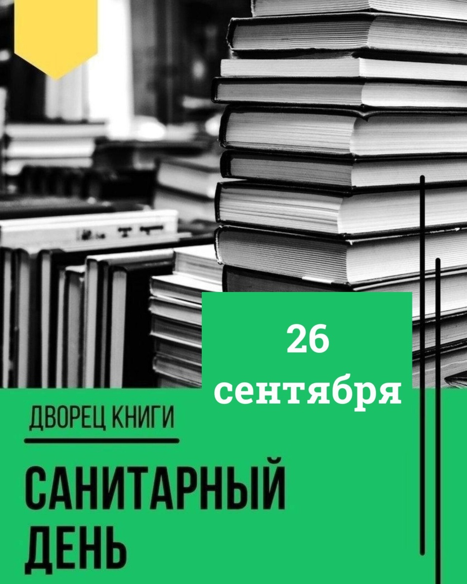 🧹Уважаемые читатели! 26 сентября, в пятницу, в библиотеке санитарный день! 📖Ждём вас во Дворце книги 27 сентября, в субботу, по обычному расписанию!