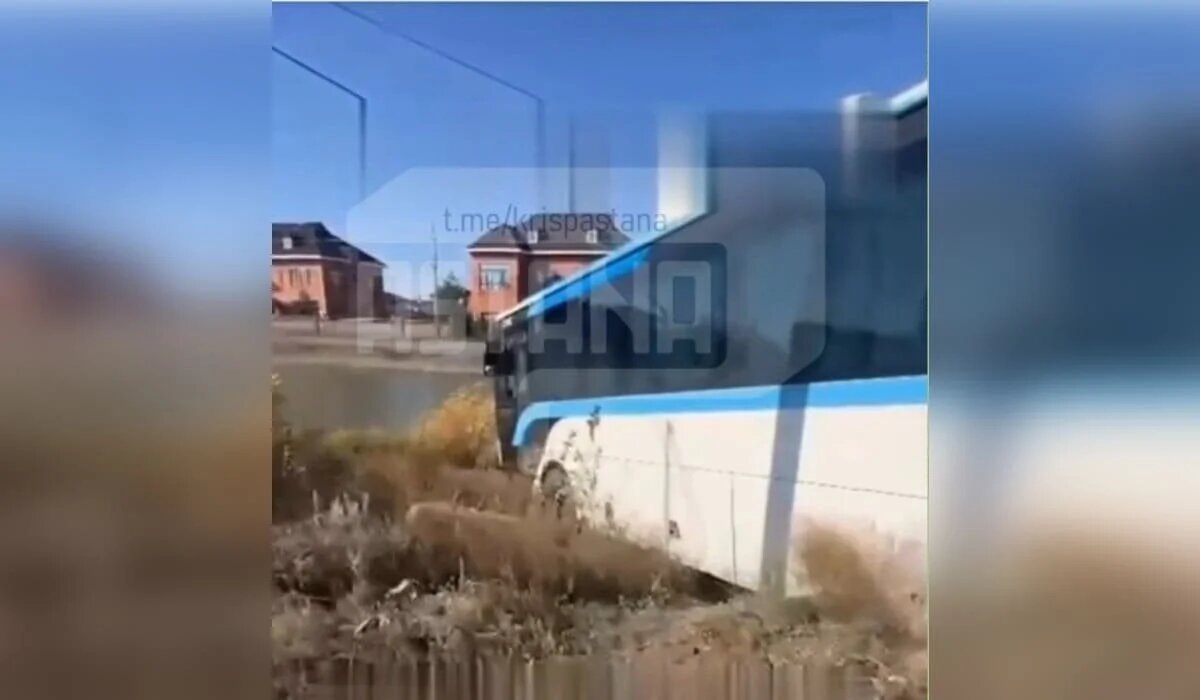Пассажирский автобус съехал в кювет под Астаной: опубликовано видео
