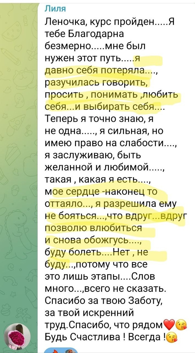 π ΠΠΎΠ³Π΄Π° ΡΠΈΡΠ°Ρ ΡΠ°ΠΊΠΈΠ΅ ΡΠ»ΠΎΠ²Π° - ΡΠ΅ΡΠ΄ΡΠ΅ Π·Π°ΠΌΠΈΡΠ°Π΅Ρ. "Π― Π΄Π°Π²Π½ΠΎ ΡΠ΅Π±Ρ ΠΏΠΎΡΠ΅ΡΡΠ»Π°β¦ ΡΠ°Π·ΡΡΠΈΠ»Π°ΡΡ Π³ΠΎΠ²ΠΎΡΠΈΡΡ, ΠΏΡΠΎΡΠΈΡΡ, ΠΏΠΎΠ½ΠΈΠΌΠ°ΡΡ, Π»ΡΠ±ΠΈΡΡ ΡΠ΅Π±Ρ. Π ΡΠ΅ΠΏΠ΅ΡΡ ΠΌΠΎΡ ΡΠ΅ΡΠ΄ΡΠ΅ ΠΎΡΡΠ°ΡΠ»ΠΎ, Ρ ΡΠ½ΠΎΠ²Π° Π²ΡΠ±ΠΈΡΠ°Ρ ΡΠ΅Π±Ρ ΠΈ Π½Π΅ Π±ΠΎΡΡΡ Π»ΡΠ±ΠΈΡΡ". ΠΡΠΎ ΠΎΡΠ·ΡΠ² ΠΏΠΎΡΠ»Π΅ 7-Π΄Π½Π΅Π²Π½ΠΎΠ³ΠΎ ΠΏΡΠ°ΠΊΡΠΈΠΊΡΠΌΠ° "ΠΠ΅ΡΠ½ΡΡΡ ΡΠ΅Π±Ρ". ΠΠ°ΠΆΠ΄ΡΠΉ Π΄Π΅Π½Ρ ΠΏΠΎ 10β15 ΠΌΠΈΠ½ΡΡ, ΠΏΡΠΎΡΡΡΠ΅ ΡΠ°Π³ΠΈ β ΠΈ ΡΡ ΡΠΆΠ΅ ΡΠ»ΡΡΠΈΡΡ ΡΠ΅Π±Ρ, ΡΠ½ΠΎΠ²Π° Π²Π΅ΡΠΈΡΡ, ΡΡΠΎ Π·Π°ΡΠ»ΡΠΆΠΈΠ²Π°Π΅ΡΡ Π»ΡΠ±Π²ΠΈ, ΡΠ½ΠΎΠ²Π° ΠΎΡΡΡΠ°Π΅ΡΡ ΡΠ΅ΠΏΠ»ΠΎ Π²Π½ΡΡΡΠΈ. β¨ ΠΠΎ Π·Π½Π°Π΅ΡΡ, ΡΡΠΎ ΡΠ°ΠΌΠΎΠ΅ Π±ΠΎΠ»ΡΠ½ΠΎΠ΅? ΠΠΎΠΊΠ° ΠΌΡ ΠΆΠ΄ΡΠΌ, ΡΡΠΎ "ΡΠ°ΠΌΠΎ ΠΏΡΠΎΠΉΠ΄ΡΡ" ΠΈΠ»ΠΈ ΡΡΠΎ "Π±ΡΠ΄Π΅Ρ Π²ΡΠ΅ΠΌΡ Π·Π°Π½ΡΡΡΡΡ ΡΠΎΠ±ΠΎΠΉ", - ΠΏΡΠΎΡ
