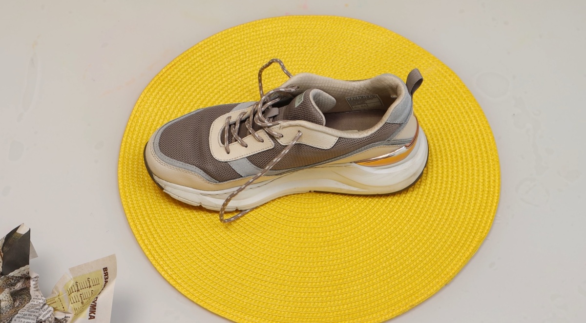 Газета — старая, добрая, победная. Набейте обувь плотно, смените бумагу через 1–2 часа и оставьте до утра. На утро — сухо и без «аромата спортзала».