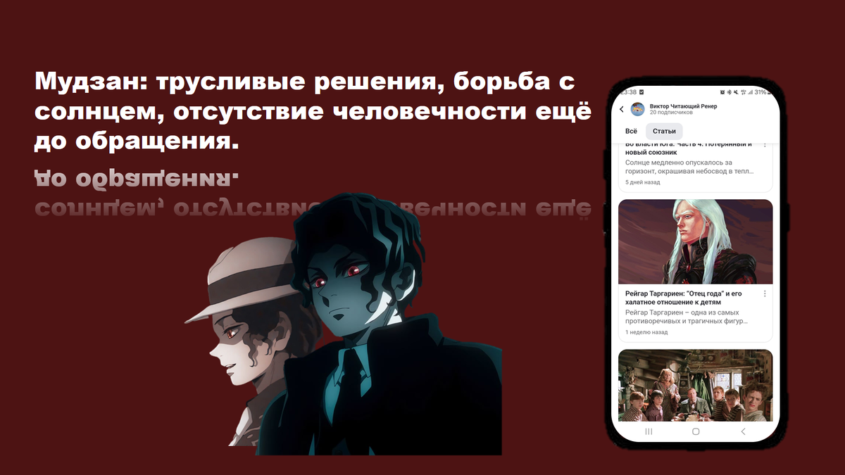 Мудзан: трусливые решения, борьба с солнцем, отсутствие человечности ещё до обращения.