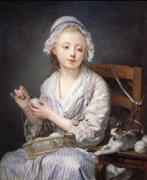 Девочка с котиком от Жана-Бати́ста Грёз, французского живописца, ведущего портретиста позднего рококо, одного из крупнейших художников эпохи