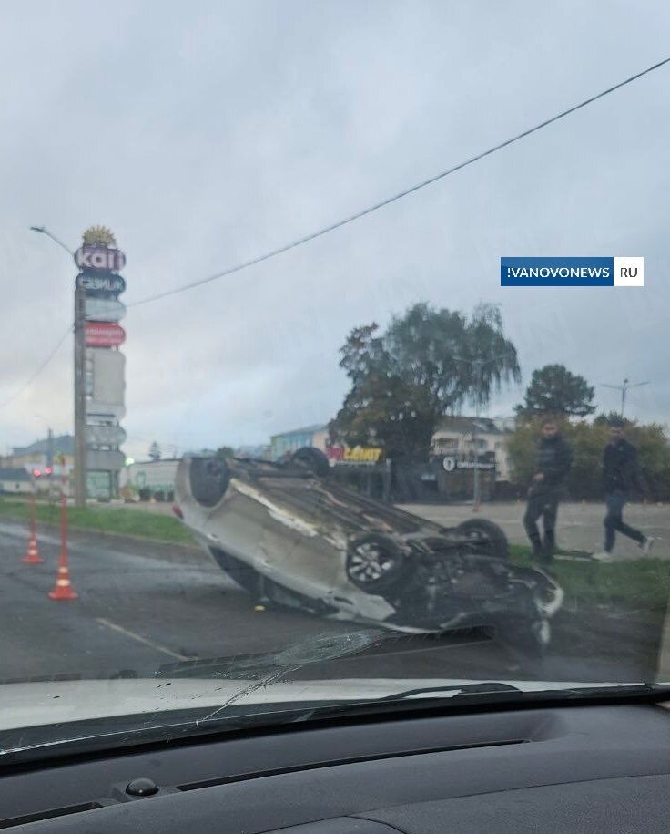 Около торгового центра «Тополь» лежит перевернутый автомобиль