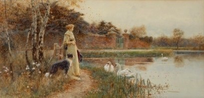 Томас Джеймс Ллойд ( 1849, Лондон, Великобритания - 1910), выдающийся акварелист, работавший в жанре пейзажа и над изображением тем с морскими видами. "Осенние листья", 1895