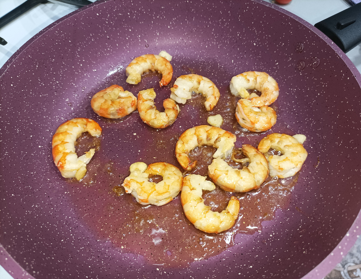 Я уже делилась этими рецептами блюд с ананасами, креветками и манго в своём телеграм-канале, но поскольку там охват не такой большой, как здесь, то решила сохранить рецепты и в дзене. Думаю, что они займут достойное место в моих тарелочках. Я купила в Магните шикарные королевские креветки VICI по хорошей цене. Они уже были по скидке, к тому же у меня был дополнительный промокод на скидку. Креветки без головы, крупные, вкусные, хорошо чистятся. Сейчас их нет в наших магазинах. Но как только появятся, куплю снова. 1. 12 креветок нужно обжарить с чесноком в оливковом масле. 2. Креветки убрать, а к чесноку добавить лук-шалот (у меня нет), морковь и болгарский перец. 3. Добавить заранее отваренный рис. У меня был рис Националь. Там ещё был указан какой-то оригинальный рецепт варки. Этот рис вместе с ананасами и изюмом добавить в сковороду. 4. По рецепту далее нужно добавить карри, соевый соус, соль и перец, но у меня вместо карри смесь разных приправ. 5. Это всё перемешивается и обж