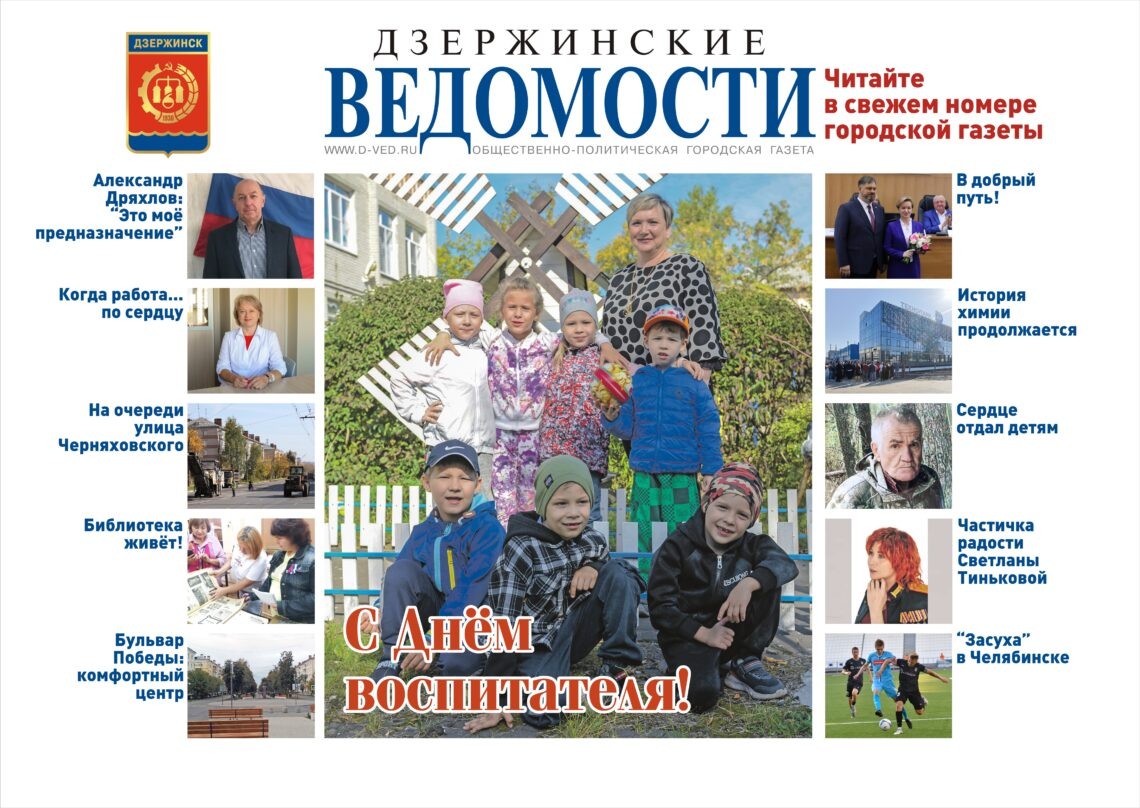 Тема номера – День дошкольного работника, который будет отмечаться в ближайшие выходные. Наши корреспонденты подготовили подборку интересных материалов о людях этой профессии. Юбиляр номера – начальник территориального отела администрации Дзержинска Александр Юрьевич Дряхлов. В его надёжных руках вот уже сорок лет находится судьба посёлков Бабинского кольца. Вчера, 24 сентября, в городской Думе Дзержинска состоялось первое заседание народных избранников VII созыва. Кто стал председателем местного парламента и над чем будут работать дзержинские депутаты – читайте на страницах номера. Светлана Тинькова, организатор волонтерских групп «ZOV» и «Тыл 52», не сомневается: на пути помощи воинам ее сопровождает Господь. Уже три года она занимается сбором необходимых за «ленточкой» вещей и помогает бойцам СВО. Дзержинск вновь подтвердил статус одной из самых спортивных территорий региона. 20 сентября более 1100 человек – от воспитанников детских садов до профессиональных спортсменов и ветеранов