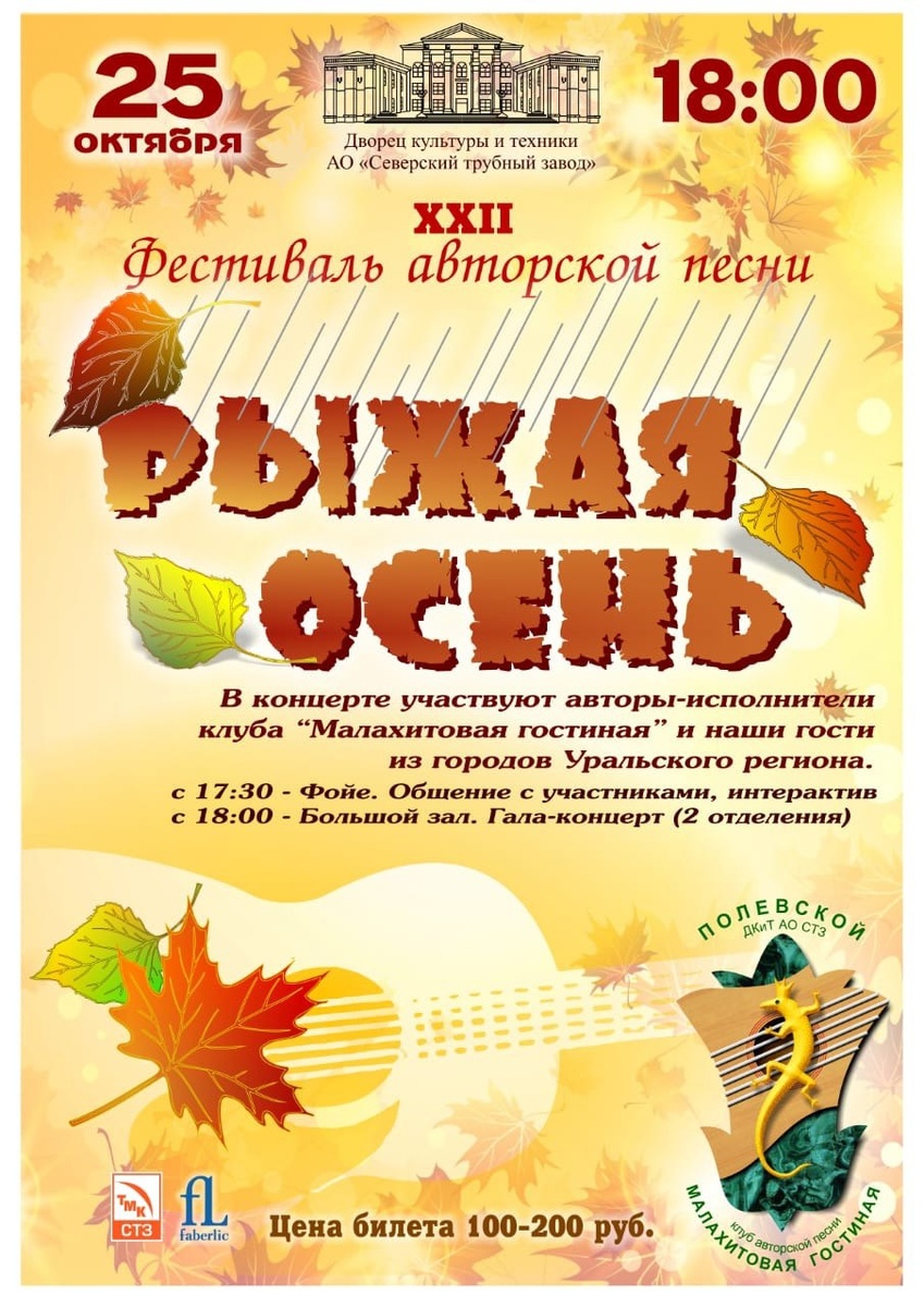 👏Друзья!👏 🍁25 октября в 18:00 состоится XXII Фестиваль авторской песни "Рыжая осень"! 🎶 💃Это замечательное событие соберет талантливых исполнителей, которые поделятся своими новыми произведениями и любимыми хитами.🎵 🌟Не упустите возможность насладиться живой музыкой, поэтическими текстами и атмосферой творческого единения!🌹Приходите поддержать артистов и провести чудесный вечер в компании единомышленников!🎊