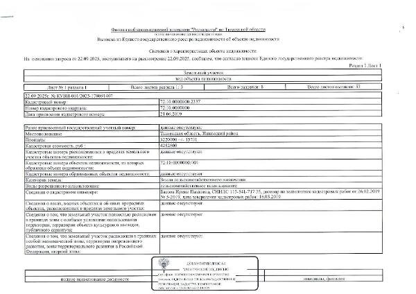Название: Земельный участок, расположенный по адресу: Тюменская область, Ишимский район; площадь земельного участка – 3220000 кв