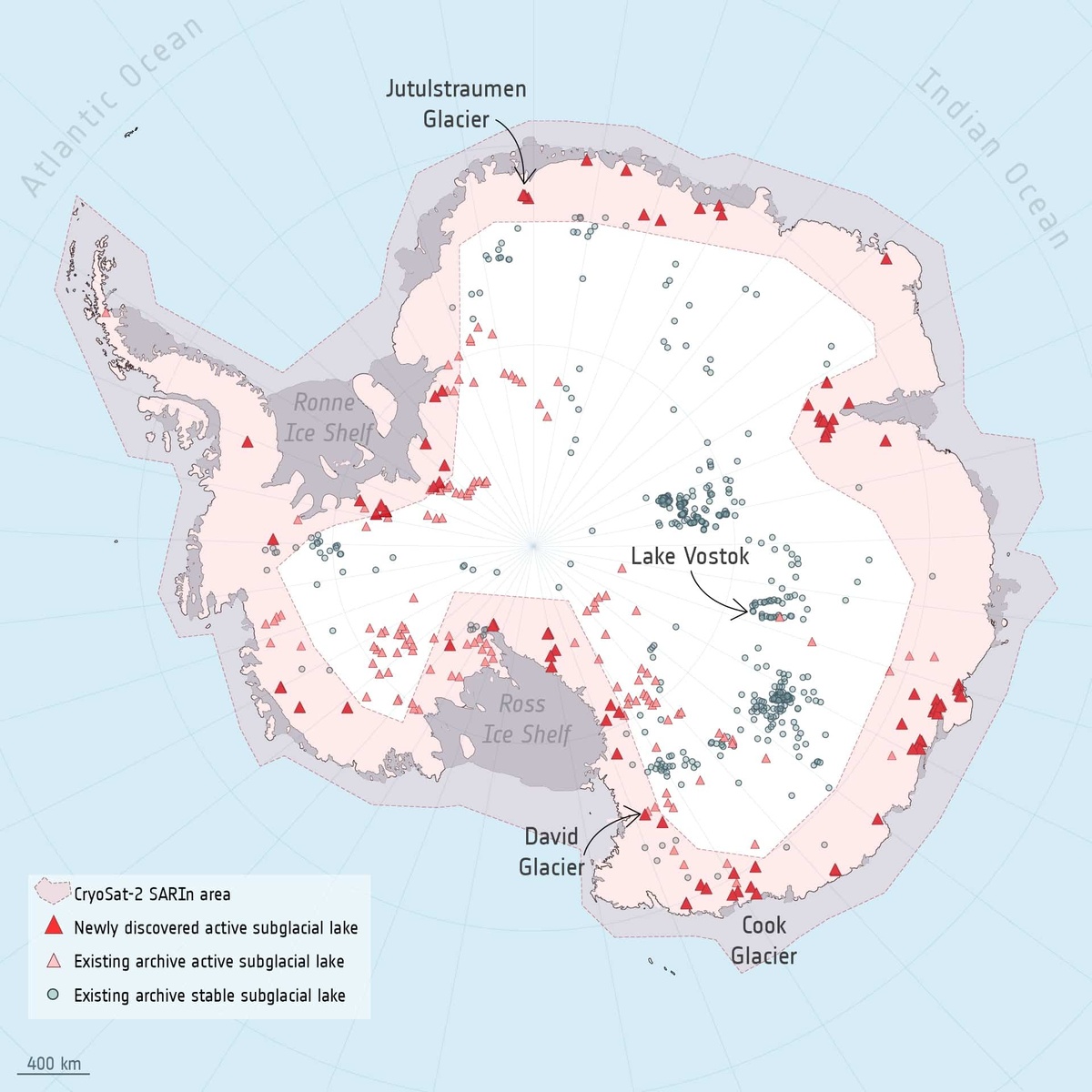 Научное издание Naked Science сообщает, что учёные нашли в Антарктиде 85 ранее неизвестных активных подлёдных озёр. На основании данных европейского спутника CryoSat-2 было выявлено 766 подлёдных озёр в Антарктиде (с учётом новых 85), из которых 231 является активным в результате циклических колебаний уровня воды. Талая вода, образующаяся под ледниками вследствие геотермальных процессов и фрикционного тепловыделения, накапливается в низинах, формируя подледниковые озёра.