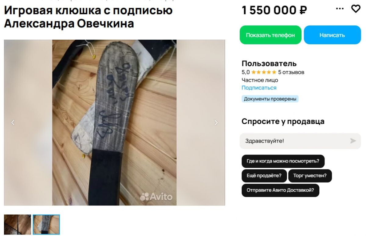 На "Авито" продолжает висеть объявление о продаже клюшки с автографом российского хоккеиста Александра Овечкина. За несколько месяцев не смогли продать, и оно понятно - цена лота неприятно удивляет. Хоть и снижается с каждым месяцем все ниже. Изначально клюшку выставляли на продажу за 2,5 млн рублей. На тот момент Овечкин забросил 888 шайб. Когда он достиг мирового рекорда Уэйна Гретцки, забросив свою 894-ю шайбу, стоимость его клюшки подскочила на 250 тысяч рублей. Продавец заявил, что после установления рекорда стоимость клюшки увеличится на 1 миллион рублей. И вот, цена лота поднялась до 3,75 млн рублей. Для сравнения - средняя цена квартиры-студии в Воронеже составляет 3,7 млн рублей. Так что неудивительно, что товар так и остался у продавца. Который, кстати, затем снизил цену до 3,55 млн рублей. Но и это не помогло - настолько заинтересованных в деятельности Овечкина не оказалось. И вот, сейчас цена за клюшку снизилась в несколько раз и составляет 1,5 млн рублей. Кстати, судя по о